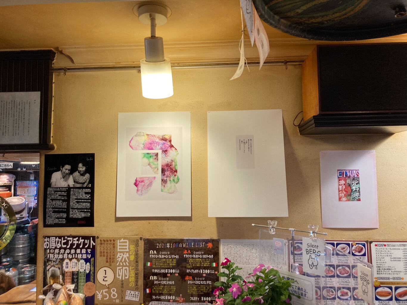 今年の秋限定のベルクブレンドのタイトルは「秋の体温」。半世紀前にベルクをオープンした井野利也。詩人•北野恭として出したファースト詩集『秋の体温』をイメージしてブレンドしました。ラベル表の絵は井野八枝。見て、読んで、飲んで、秋の体温の世界をゆっくりお楽しみください。10月31日まで店内で秋の体温展も開催しております。