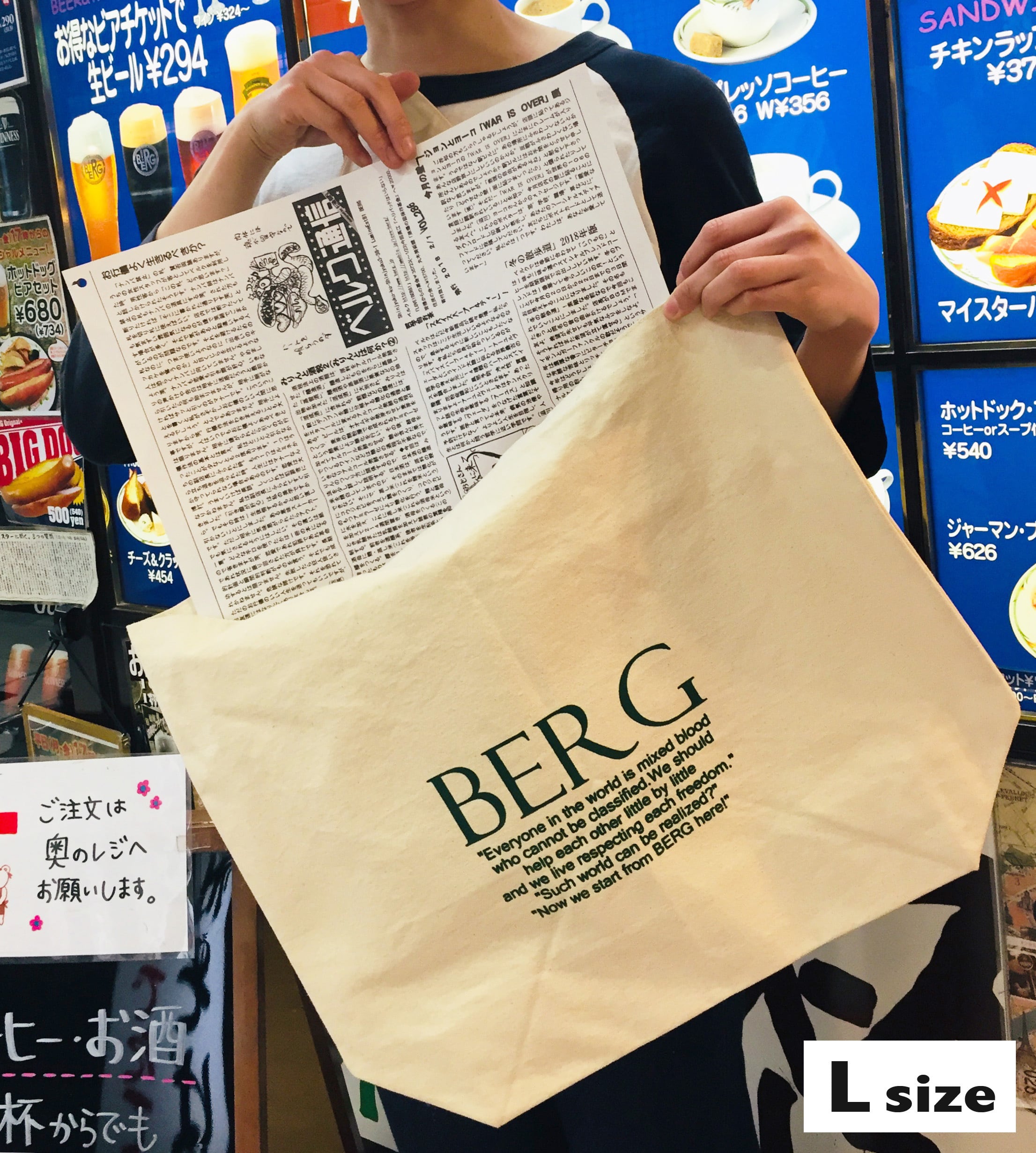 ベルクオリジナルのロゴトート!Lサイズはベルク通信(B4)が横にラクラク入ります♪